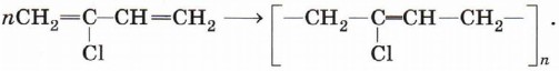 Глава 3. Углеводороды § 13. Алкадиены (окончание)Впервые бутадиеновый каучук стереорегулярного строения удалось получить в 1957 г. группе советских учёных под руководством академика Б. А. Долгоплоска и члена-корреспондента Академии наук А. А. Короткова. По износоустойчивости и эластичности этот полимер не только не уступал натуральному каучуку, но и превосходил его. Стереорегулярному каучуку, получаемому из бутадиена-1,3, дали особое название — дивиниловый каучук. Вскоре был получен и полиизопрен — синтетический каучук изопреновый (СКИ) стереорегулярного строения, аналог природного каучука. Общим недостатком углеводородных каучуков является их низкая термическая устойчивость, набухание и разрушение в нефтепродуктах (бензин, масла). Этих недостатков лишён хлоропреновый каучук, получаемый полимеризацией 2-хлорбутадиена-1,3 (хлоропрена):