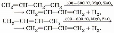 Дегидрирование. Одним из самых распространённых способов получения бутадиена-1,3 является двухстадийное каталитическое дегидрирование н-бутана: