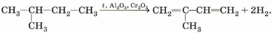 Другое, не менее важное, чем бутадиен-1,3, соединение — изопрен (2-метилбутадиен-1,3) получают аналогичным способом — дегидрированием 2-метилбутана: