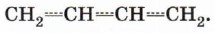 Свойства алкадиенов с сопряжёнными связями весьма специфичны, так как сопряжённые π-связи существенно влияют друг на друга. р-Орбитали, образующие сопряжённые π-связи, фактически составляют единую систему (её называют π-системой), так как р-орбитали соседних π-связей частично перекрываются (рис. 25). Длины двойных связей (1 и 3) составляют 0,137 нм (двойная связь в алкенах — 0,132 нм), а одинарной (2) — 0,146 нм (0,154 нм у алканов). Таким образом, можно считать, что кратность связей 1 и 3 несколько меньше двух, а связи 2 больше единицы. Иногда алкадиены с сопряжёнными связями изображают следующим образом: