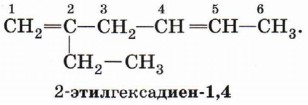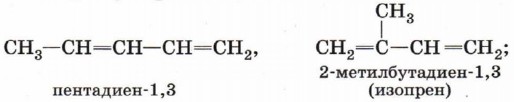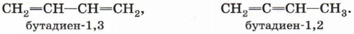 Алкадиены изомерны соединениям классов алкинов и циклоалкенов (см. § 12 «Алкины»). При формировании названия алкадиена указывают номера атомов углерода, от которых начинаются двойные связи. Главная цепь обязательно должна содержать обе кратные связи. Например: