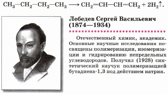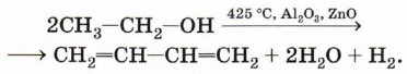Получение алкадиеновМетод Лебедева. В 1932 г. в нашей стране было налажено производство бутадиена из этилового спирта методом, разработанным С. В. Лебедевым. В основе метода лежит реакция, уравнение которой