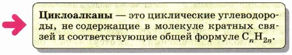 Глава 3. Углеводороды § 14. ЦиклоалканыЦиклоалканы представляют собой карбоциклические углеводороды. Как вы уже знаете, карбоциклические соединения делятся на алициклические, циклы которых не содержат замкнутой системы сопряжённых двойных связей, и ароматические — соединения, содержащие такую систему. Строение циклоалкановК алициклическим углеводородам относятся вещества многих классов: циклоалканы, циклоалкены, циклоалкадиены и т. д. Предметом нашего рассмотрения будут циклоалканы.