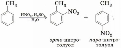 По электрофильному механизму идут многие реакции, в которых принимает участие бензол и другие ароматические соединения. Нитрование. Реакция толуола с нитрующей смесью приводит к образованию двух изомеров нитротолуола:
