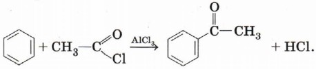 В данном случае карбокатион образуется при отщеплении хлора от хлорэтана под воздействием катализатора — АlСl3. Ацилирование. Введение ацильной группы в молекулу бензола происходит в присутствии катализатора — АlCl3: