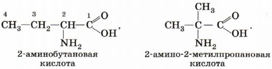 Широко распространены также названия аминокислот, в которых положения аминогруппы обозначаются буквами греческого алфавита: α, β, γ и т. д. Так, 2-аминобутановую кислоту можно назвать также α-аминомасляной кислотой: