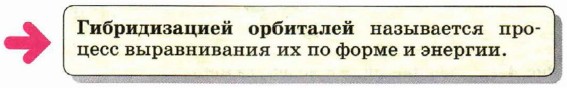Введение § 4. Валентные состояния атома углеродаВы уже знаете, что электронные орбитали характеризуются разными значениями энергии, различной геометрической формой и направленностью в пространстве. Так, 1s-орбиталь обладает более низкой энергией. Затем следует 2s-орбиталь, обладающая более высокой энергией. Обе эти орбитали имеют форму сферы. Естественно, 2s-орбиталь больше 1s-орбитали: большая энергия является следствием большего среднего расстояния между электронами и ядром. Три 2р-орбитали гантелеобразной формы с равной энергией направлены вдоль осей прямоугольной системы координат. Следовательно, ось каждой 2р-орбитали перпендикулярна осям двух других 2р-орбиталей. Атомы углерода, входящие в состав органических соединений, могут находиться в трёх валентных состояниях. Первое валентное состояние атома углерода рассмотрим на примере молекулы метана СН4. При образовании молекулы метана СН4 атом углерода из основного состояния переходит в возбуждённое, в котором имеет четыре неспаренных электрона: один s- и три р-электрона. Эти электроны участвуют в образовании четырёх s-связей с четырьмя атомами водорода. При этом следует ожидать, что три связи С—Н, образованные за счёт спаривания трёх р-электронов атомов углерода с тремя s-электронами трёх атомов водорода (s—р), должны бы отличаться от четвёртой (s—s) связи прочностью, длиной, направлением. Расчёт электронной плотности в молекуле метана показывает, что все связи в его молекуле равноценны и направлены к вершинам тетраэдра. Это объясняется тем, что при образовании молекулы метана ковалентные связи возникают за счёт взаимодействия не «чистых», а так называемых гибридных, т. е. усреднённых по форме и размерам (а следовательно, и по энергии), орбиталей.