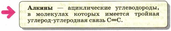 Наличие тройной связи в молекуле отражается суффиксом -ин в названии вещества. Простейшим алкином является этин СН≡СН, называемый также ацетиленом. Таким образом, углеводороды, молекулы которых содержат кроме одинарных также и кратные (двойные или тройные) связи, относятся к непредельным (ненасыщенным) углеводородам. Углеводороды могут содержать замкнутую цепочку углеродных атомов. В этом случае вещество относится к группе циклических углеводородов (см. схему 1).