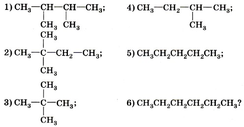 1. Какие виды изомерии вы знаете? 2. Чем отличается структурная изомерия от пространственной? 3. Какие из соединений, формулы которых приведены ниже, являются: а) изомерами; б) гомологами: