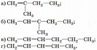 8. Какой из трёх алкенов: бутен-1, пентен-2, 2-метилбутен-2 — имеет геометрические изомеры? Напишите их формулы. Попытайтесь сформулировать правило, по которому можно определить, имеет ли алкен геометрические изомеры. После одобрения учителем используйте это правило для выполнения задания 9. 9. Укажите формулы углеводородов, имеющих геометрические изомеры: