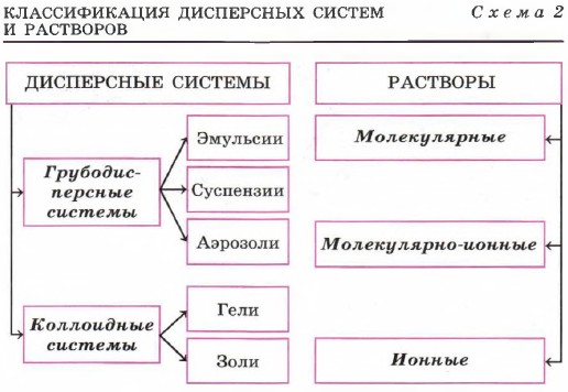 Классификация дисперсных систем (в зависимости от размеров частиц фазы) и растворов дана на схеме 2.