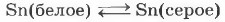 Белое олово — это мягкий пластичный металл, с которым мы сталкиваемся чаще всего. Однако при понижении температуры оно может превращаться в серое олово — порошок, имеющий все свойства неметаллов. Этот процесс катализируется самим серым оловом: достаточно появиться всего лишь одной пылинке серого олова, как начинается реакция, которую уже невозможно остановить. При этом изделие из белого блестящего металла превращается в серый невзрачный порошок. Такой процесс носит образное название «оловянной чумы». Именно взаимопревращение аллотропных модификаций олова: