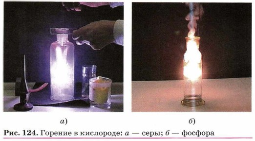 Глава третья. Вещества и их свойства § 21. Неметаллы (окончание)Восстановительные свойства неметалловИсходя из значений электроотрицательности, можно предположить, что по отношению к фтору и кислороду остальные неметаллы всегда будут проявлять восстановительные свойства. Наиболее известны и значимы реакции горения неметаллов с участием кислорода (рис. 124, а), например: