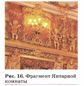 Наиболее пластичны золото, серебро и медь. Недаром для своего знаменитого опыта, позволившего создать планетарную модель атома, Э. Резерфорд использовал именно золото, из которого можно изготовить тоненькую фольгу толщиной всего 0,003 мм. Такие же тонкие листочки фольги используют для золочения изделий, например деревянной резьбы. Так, в Большом Екатерининском дворце в Царском Селе воссозданная заново знаменитая Янтарная комната потрясает воображение посетителей сиянием золочёной резьбы и мягким солнечным светом янтаря (рис. 16). Художественные изделия из золота, изготовление которых основано на его пластичности, дошли до нас через тысячелетия (рис. 17).