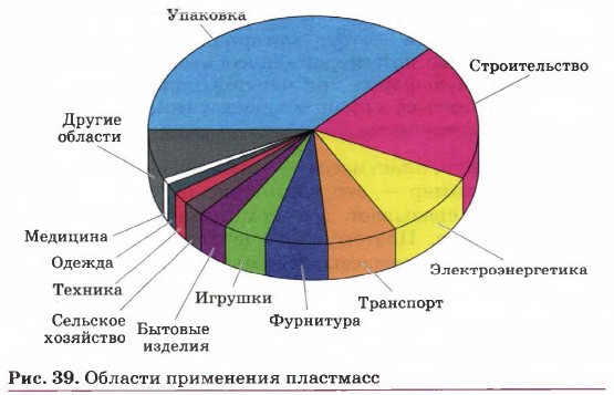 Основные потребители пластмасс — строительная индустрия, машиностроение, электротехника, транспорт, производство упаковочных материалов, товаров народного потребления (рис. 39).