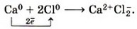 3. Сначала найдём наименьшее общее кратное между зарядами образовавшихся ионов, оно равно 2 (2 × 1). Затем определим, сколько атомов кальция нужно взять, чтобы они отдали два электрона (т. е. надо взять 1 атом Са), и сколько атомов хлора надо взять, чтобы они могли принять два электрона (т. е. нужно взять 2 атома Сl). 4. Схематично образование ионной связи между атомами кальция и хлора можно записать так: