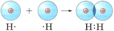 Если сближаются два атома и у каждого из них есть по одному внешнему неспаренному электрону, то эти электроны «объединяются» и становятся общими для обоих атомов, у которых тем самым сформируется завершённый внешний восьмиэлектронный уровень.