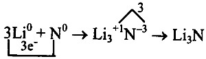 Найдем наименьшее общее кратное между зарядами образовавшихся ионов, оно равно 3(3 • 1). Чтобы атомы лития отдали 3 электрона, необходимо 3 атома, чтобы атомы азота смогли принять 3 электрона, необходим только один атом: