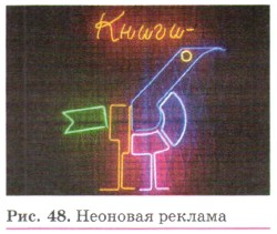 Неон используют для изготовления световой рекламы (рис. 48). Вспомните образное выражение «улицы города были залиты неоном ».