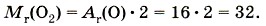 Газы водород, кислород, азот, хлор, фтор образуют двухатомные молекулы, соответственно — Н2, О2 , N2, Cl2, F2. Состав вещества изображают на письме, используя химические знаки и цифры — индексы, с помощью химической формулы. По химической формуле, как вы уже знаете, вычисляют относительную молекулярную массу вещества (Мг). Относительная молекулярная масса простого вещества равна произведению относительной атомной массы на число атомов в молекуле, например кислорода О2:
