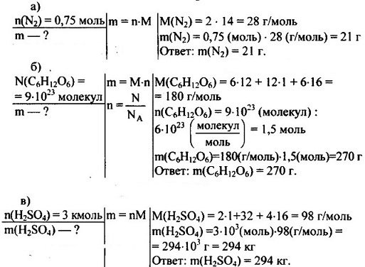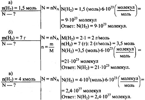 Глава вторая. Простые вещества Количество вещества. ОтветыОтвет на вопрос 11 кмоль содержит 1000 моль, а в 1 моле 6 • 1023 молекул, поэтому 1 кмоль содержит 6 • 1026 молекул. 1 ммоль содержит 0,001 моль, поэтому 1 ммоль содержит 6 • 1020 молекул. Ответ на вопрос 2