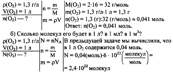Ответ на вопрос 4«Масса измеряется в миллиграммах, граммах, килограммах. Количество вещества измеряется в миллимолях, молях, киломолях». Ответ на вопрос 5Разобьем задачу на несколько пунктов. а) Какое количество кислорода будет содержаться в 1 л его?