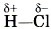 При химическом взаимодействии общая электронная пара смещена в сторону более электроотрицательного атома хлора: