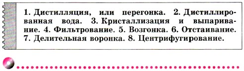 1. Какой способ разделения смесей описан в научно-фантастическом произведении А. Беляева «Продавец воздуха»? 2. Откуда берёт своё начало поверье, что рассыпанная соль — к ссоре? Как помирить людей, поссорившихся из-за рассыпанной соли? 3. Укажите способы разделения следующих смесей: а) зубной порошок и поваренная соль; б) спирт и вода; в) бензин и вода. 4. Как в походных условиях очистить и обеззаразить речную воду и сделать её пригодной для питья и приготовления пищи? 5. Почему работники элеваторов (зернохранилищ) при просеивании и сортировке зерна надевают специальную маску? 6. Какой способ очистки чайной заварки от чаинок вы используете, когда наливаете её из чайника через ситечко? <<< К началу Ответы к § 26 >>>