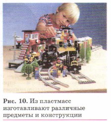 Введение Превращения веществИспользование пластмасс многообразно. Области применения этих материалов в современной жизни иллюстрирует рисунок 9. Из пластмасс изготавливают не только детские игрушки (рис. 10), но и настоящие детали и конструкции. Кроме полимеров, к которым относятся и синтетические волокна, и удивительные пластмассы, химия создаёт и моющие средства, и минеральные удобрения, и средства защиты растений, и лекарственные средства, и многое, многое другое. С помощью химии человек получает вещества с заранее заданными свойствами, а из них производят продукты питания, одежду, обувь, технику, транспорт, современные средства связи и т. д.