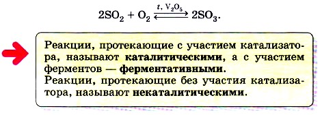 В этой реакции участвует катализатор — оксид ванадия (V) V205, который указывают над знаком обратимости: