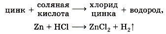 Глава четвёртая. Изменения, происходящие с веществами § 32. Реакции замещенияПознакомимся с третьим типом реакций — реакциями замещения. Повторим опыт замечательного английского химика — лорда Г. Кавендиша. Нальём в пробирку 2—3 мл соляной кислоты, а затем поместим в неё 2—3 гранулы (от греч. гранула — зёрнышко) цинка. Заметим выделение газа. Накроем на 3—4 с пробирку-реактор, в которой протекает реакция, другой пробиркой большего диаметра и соберём в неё выделяющийся газ (методом вытеснения воздуха). Это возможно потому, что выделяющийся в результате этой реакции газ — водород — гораздо легче воздуха. Приподняв пробирку с водородом над пробиркой-реактором, быстро поднесём её отверстие к пламени горелки. Раздастся взрыв, сопровождающийся характерным «лающим» звуком. Это взрывается смесь водорода с воздухом, которую образно называют «гремучим газом». Точнее, так называют смесь 2 объёмов водорода и 1 объёма кислорода. Если же закрыть отверстие пробирки-реактора пальцем и через 5—10 с после того, как почувствуется давление собранного в верхней части пробирки газа на палец, убрать его с одновременным поднесением к отверстию горящей спички, то раздастся лёгкий хлопок — результат сгорания чистого водорода. Если несколько капель жидкости, полученной в результате реакции между цинком и соляной кислотой, поместить на часовое стекло и выпарить, то можно заметить образование кристалликов соли — хлорида цинка. Составим уравнение реакции цинка с соляной кислотой: