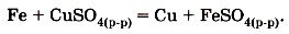 соляной кислотой не взаимодействует и поэтому находится в ряду активности Mметаллов после водорода. В пробирке с этим металлом и соляной кислотой реакции не наблюдалось. MАналогично не будут вытеснять водород из растворов кислот ртуть, серебро и золото. Ряд активности металлов можно также использовать для прогнозирования возможности протекания реакций вытеснения одних металлов из растворов их солей другими. Обратимся к эксперименту: поместим в химический стакан с раствором сульфата меди (II) большой железный гвоздь. Уже через 2—3 мин можно заметить, что та часть гвоздя, которая находится в растворе, покрылась красным налётом выделившейся меди (рис. 105). Про- изошла реакция, уравнение которой: