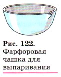Сначала фильтровальную бумагу надо сложить и обрезать, как показано на рисунке 121, а затем вложить в воронку и смочить водой, чтобы она плотнее прилегала к стенкам воронки и чтобы сухой фильтр не впитал фильтруемую жидкость (если её мало, то можно вовсе не получить фильтрата). При фильтровании жидкость наливают на фильтр по палочке тонкой струёй, направляя её на стенку воронки, а не на непрочный центр фильтра, чтобы его не разорвать. Через фильтр проходит прозрачный фильтрат, а на фильтре задерживается осадок. Для последующей работы может понадобиться и то, и другое. Для выпаривания используют фарфоровые чашки (рис. 122). Выпаривание применяют, когда нужно выделить растворённое вещество из раствора. В фарфоровую чашку наливают раствор так, чтобы он занимал не более ⅓ объёма чашки. Устанавливают чашку на кольце штатива и нагревают на открытом пламени при постоянном помешивании, чтобы выпаривание шло равномерно. Для получения газов используют простейший прибор, который состоит из колбы или пробирки и плотно входящих в них пробок с газоотводными трубками (рис. 123), или аппарат Кирюшкина (рис. 124). Прибор, собранный для получения газов, всегда вначале проверяют на герметичность (рис. 125). Для этого кончик газоотводной