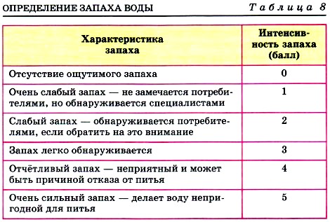 Практическая работа № 3 Анализ почвы и водыОпыт 1. Механический анализ почвыВ пробирку поместите почву (столбик почвы должен быть 2—3 см). Прилейте дистиллированную воду, объём которой должен быть в 3 раза больше объёма почвы. Закройте пробирку пробкой и тщательно встряхивайте 1—2 мин, а затем вооружитесь лупой и наблюдайте за осаждением частиц почвы и структурой осадков. Опишите и объясните свои наблюдения. Опыт 2. Получение почвенного раствора и опыты с нимПриготовьте бумажный фильтр, вставьте его в воронку, закреплённую в кольце штатива. Подставьте под воронку чистую сухую пробирку и профильтруйте полученную в первом опыте смесь почвы и воды. Перед фильтрованием смесь не следует встряхивать. Почва останется на фильтре, а собранный в пробирке фильтрат представляет собой почвенную вытяжку (почвенный раствор). Несколько капель этого раствора поместите на стеклянную пластинку и с помощью пинцета подержите её над горелкой до выпаривания воды. Что наблюдаете? Объясните. Возьмите две лакмусовые бумажки (красную и синюю), нанесите на них стеклянной палочкой почвенный раствор. Сделайте вывод по результатам своих наблюдений. Опыт 3. Определение прозрачности водыДля опыта нужен прозрачный плоскодонный стеклянный цилиндр диаметром 2—2,5 см, высотой 30—35 см. Можно использовать мерный цилиндр на 250 мл без пластмассовой подставки. Мы рекомендуем провести опыт сначала с дистиллированной водой, а затем с водой из водоёма и сравнить результаты. Установите цилиндр на печатный текст и вливайте исследуемую воду, следя за тем, чтобы можно было читать через воду текст. Отметьте, на какой высоте вы не будете видеть шрифт. Измерьте высоты столбиков воды линейкой. Сделайте выводы. Опыт 4. Определение интенсивности запаха водыКоническую колбу наполните на 2 / 3 объёма исследуемой водой, плотно закройте пробкой (желательно стеклянной) и сильно встряхните. Затем откройте колбу и отметьте характер и интенсивность запаха. Дайте оценку интенсивности запаха воды в баллах, пользуясь таблицей 8.