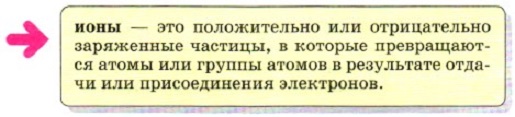 Ионы — это одна из форм существования химического элемента. Свойства ионов совершенно не похожи на свойства атомов, которые их образовали. Например, атомы металла натрия Na0 энергично взаимодействуют с водой, образуя при этом щёлочь (NaOH) и водород Н2, в то время как ионы натрия Na+ таких продуктов не образуют. Хлор Сl2 имеет жёлто-зелёный цвет и резкий запах, ядовит, а ионы хлора Сl- бесцветны, неядовиты, лишены запаха. Никому не придёт в голову использовать в пищу металлический натрий и газообразный хлор, в то время как без хлорида натрия, состоящего из ионов натрия и хлора, невозможно приготовление пищи. Напомним: