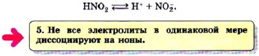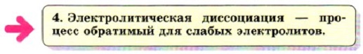 Наряду с процессом диссоциации (распад электролита на ионы) протекает и обратный процесс — ассоциация (соединение ионов). Поэтому в уравнениях электролитической диссоциации слабых электролитов вместо знака равенства ставят знак обратимости, например: