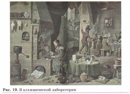 Введение Краткий очерк истории развития химииПроисхождение слова химия спорно. Хеми — на коптском языке означает «чёрный, тайный». Это слово для народов, населявших пустыню, совпадало с обозначением самого Египта, ибо чёрная, плодородная земля долины Нила сильно отличалась от жёлтой почвы пустыни. Таким образом, для арабов химия стала наукой чёрной земли. Арабы снабдили это слово ещё своей арабской приставкой ал, и таким образом сформировалось слово алхимия. Алхимия — это средневековое название химии, данное арабами. Однако, может быть, представление о чём-то чёрном относилось не только к цвету почвы, но также и к самой сути этой науки — тёмному и таинственному в те времена. Другое толкование слова «химия» происходит от греческого глагола хюма — «выливать», поскольку оно связано с металлургией — одной из первых по времени отраслей химии. Как можно заметить, выяснение этимологии (происхождения) химических терминов имеет глубокий смысл — оно помогает понять или историю, или практическое значение того, что обозначают химическим термином. Цель алхимии — поиски путей превращения неблагородных металлов в благородные (золото и серебро) с помощью воображаемого вещества — философского камня. Многие алхимики занимались бесплодными поисками философского камня, который, по их мнению, мог также удлинить человеческую жизнь, обеспечить бессмертие или исцелить болезни. В поисках философского камня алхимики открыли много новых веществ, разработали способы их очистки, создали некоторое химическое оборудование (рис. 19). Большинством достижений алхимиков невозможно было воспользоваться: они держали свои методы в секрете, зашифровывали описания полученных веществ и проведённых опытов, так как преследовали цели обогащения.