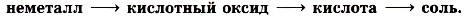 Здесь также можно выделить две разновидности. 1. Генетический ряд неметаллов, которым в качестве гидроксида соответствует растворимая кислота, может быть отражён в виде такой цепочки превращений:
