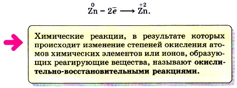 Глава пятая. Растворение. Растворы. Реакции ионного обмена и окислительно-восстановительные реакции § 44. Окислительно-восстановительные реакцииМногообразие классификаций химических реакций по различным признакам (направлению, числу и составу реагирующих и образующих веществ, использованию катализатора, тепловому эффекту) можно дополнить ещё одним признаком. Этот признак — изменение степени окисления атомов химических элементов, образующих реагирующие вещества. Например, в реакции