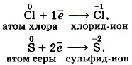 Под восстановлением понимают процесс присоединения электронов атомами, ионами или молекулами. Степень окисления при этом понижается. Например, атомы неметаллов могут присоединять электроны, превращаясь при этом в отрицательные ионы, т. е. восстанавливаясь1: 1 Далее мы будем указывать степень окисления, а не заряды ионов, так как их численные значения совпадают.