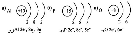 а) — схема строения атома алюминия; б) — схема строения атома фосфора; в) — схема строения атома кислорода. Ответ на вопрос 2а) сравним строение атомов азота и фосфора.