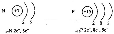 Строение электронной оболочки этих атомов схоже, оба на последнем энергетическом уровне содержат 5 электронов. Однако у азота всего 2 энергетических уровня, а у фосфора их 3.