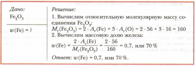 Задача 1Определите массовую долю железа в его соединении с кислородом, имеющем формулу Fe2O3.