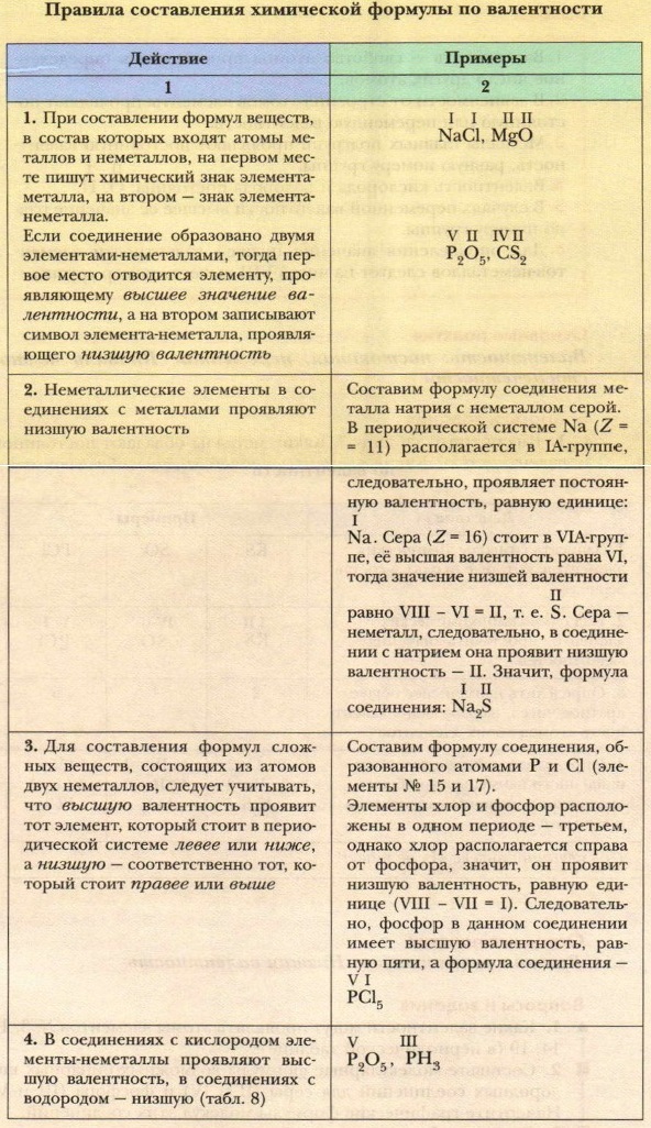 Для того чтобы научиться составлять химические формулы по валентности, надо помнить следующие правила.
