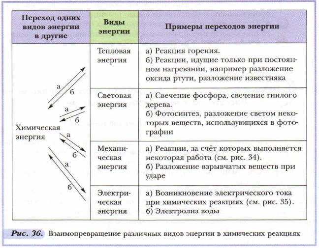 Из курса физики вы знаете, что явления природы обычно сопровождаются превращениями одного вида энергии в другой. В ходе химических реакций также происходит взаимопревращение различных видов энергии.
