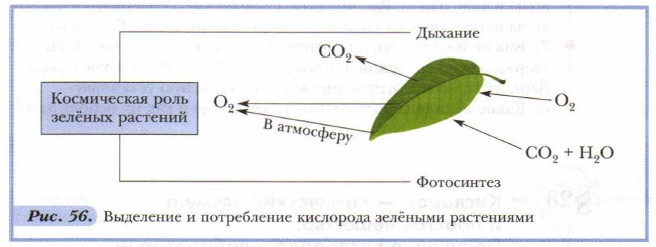 Из курса биологии вы знаете: основной источник поступления кислорода в атмосферу — процесс фотосинтеза (рис. 56). Рассмотрим кислород с позиций имеющихся у нас химических знаний. Обобщим сведения о кислороде — химическом элементе и кислороде — простом веществе (табл. 16). Жидкий кислород хранят и транспортируют в металлических сосудах Дьюара (термосах) или в специальных цистернах — танках. Кислородные баллоны окрашены в голубой цвет. Итак, химический элемент кислород существует в виде простых веществ — кислорода и озона, имеющих первостепенное значение для существования жизни на Земле, и в составе огромного количества органических и неорганических веществ. Существует три способа получения кислорода: 1) путём разложения химических соединений кислорода при нагревании — термическое разложение; 2) посредством разложения воды электрическим током; 3) разделением воздуха на составные части.