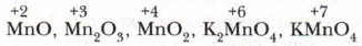 Глава 9. Строение вещества Степень окисленияМногие элементы, и особенно элементы побочных подгрупп, имеют переменную степень окисления. Так, например, марганец имеет степень окисления в разных его соединениях +2, +3, +4, +6, +7: