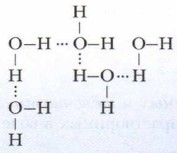 Молекулы воды оказываются ассоциированными (объединёнными) посредством водородных связей. В единый комплекс объединяется по 5—7 молекул воды. Такое объединение ведёт к укрупнению частиц вещества, что и обусловливает физические свойства воды: tпл = 0°С, tкип = 100 °С (при атмосферном давлении), ρ = 0,9982 г/см3 при 20 °С, т. е. самую высокую теплоёмкость среди жидкостей (4,184 кДж/моль).