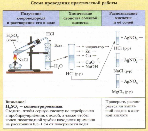 Практическая работа 8 Получение соляной кислоты и опыты с ней. Решение экспериментальных задач по теме «ГалогеныЦель работы: получить соляную кислоту, изучить её свойства, научиться отличать соляную кислоту и её соли от других кислот и их солей.