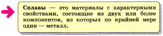 Мельхиор — сплав, содержащий около 80% меди и 20% никеля, похож по внешнему виду на серебро. Используют его для изготовления сравнительно недорогих столовых приборов и художественных изделий. Дюралюминий (дюраль, дуралюмин) — сплав на основе алюминия, содержащий медь, магний, марганец и никель. Имеет хорошие механические свойства, его применяют в самолёто- и машиностроении (рис. 34).